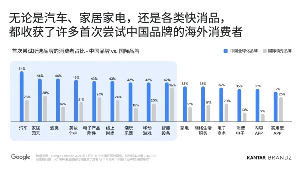 在2024年的全球市场中,中国全球化品牌正以强劲的增长势头和日益增强的品牌影响力,重塑着国际消费格局。根据凯度集团与谷歌Google联合发布的《2024凯度BrandZ中国全球化品牌50强》报告指出,过去一年,中国全球化品牌在赢得新消费客群方面取得了显著成功;在价格优势之上,中国品牌凭借敏捷供应链和技术创新吸引了全球消费者的好奇心,未来,品牌需将重点落在满足消费者需求和建立品牌信任上,推动将好奇心向实际购买转化。