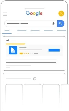 对于应用安装和应用预注册广告系列,Google 可以向搜索与您的应用相关的字词和应用的用户展示您的广告,也可以向访问类似应用的应用详情页面的用户展示您的广告。广告可以包括您的应用图标、应用名称、开发者名称和候选文字,并且可以链接到 Play 商店中的商品详情页面,用户可以在其中安装您的应用或进行注册以在应用上架时收到通知。