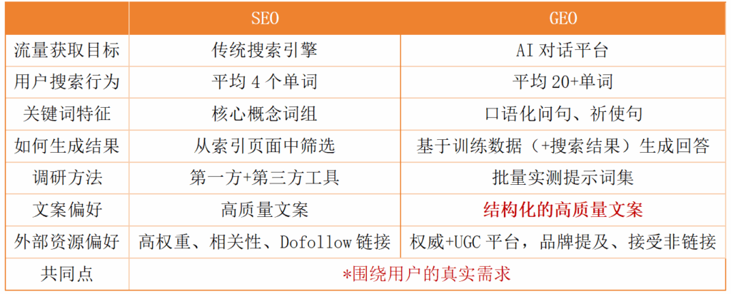 简单总结一个公式:GEO = SEO + 针对AI的调整和补充优化