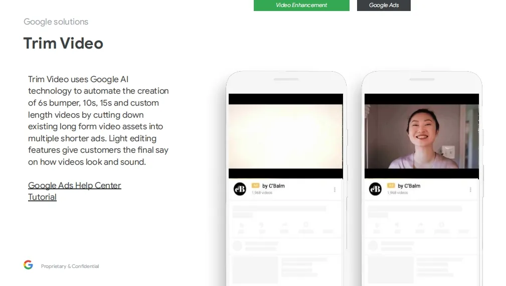 AutoTrim运用谷歌人工智能技术,创建长视频素材的简短版本,并自动将它们添加到ACi广告系列中,从而有机会通过添加这些新的简短素材来提高广告系列的性能。