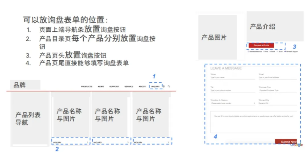 3)询盘模块易见:在任何页面都应确保询盘或联系模块的清晰可见和易于使用。