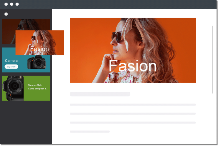 编辑和设计网页的过程是视觉可见的,不需要开发人员参与,HTML代码是在系统后台自动生成和部署的。通过编辑器拖动模块即可调整页面,上传图片和填写文字内容即可完成编辑,同时可以实时预览网页在电脑和移动设备上的视图效果。